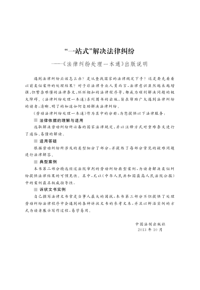 本书由权威法律出版机构中国法制出版社精心编撰,是‘法律纠纷处理一本通’系列中的重要分册,专为劳动者、用人单位及法律实务工作者量身打造。全书围绕劳动法律纠纷的核心问题,系统梳理相关法律法规,通过‘法律依据+适用答疑+典型案例+诉状文书实例’四位一体的结构,帮助读者快速理解法律条文、掌握实务操作。书中精选最高人民法院公报案例,增强判决结果的可预见性,同时提供实用文书范本,真正实现‘看得懂、用得上’。无论是应对劳动合同、工伤赔偿,还是劳动仲裁与诉讼,本书都是一本不可或缺的案头工具书。