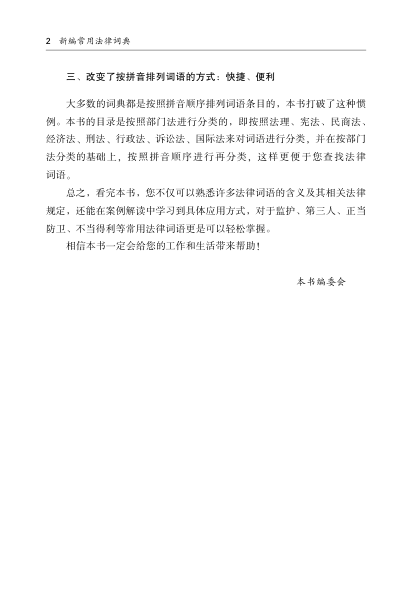 这本《新编常用法律词典:案例应用版:最新升级版》由中国法制出版社出版,专为普通读者打造,旨在破解法律术语的理解难题。书中收录大量现行法律中的常用词汇,并创新性地结合真实案例进行解读,让抽象的法律概念变得生动易懂。不同于传统词典按拼音排序的方式,本书按法理、宪法、民商法、刑法等部门法分类编排,查找更高效。无论是日常生活中遇到的‘不当得利’‘正当防卫’,还是法律实务中的‘第三人’‘监护’等概念,都能在这里找到清晰解释与应用场景。适合法律初学者、从业者及广大关心法律生活的读者查阅使用。