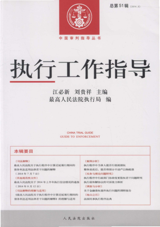 本书为最高人民法院执行局主编的《中国审判指导丛书》系列之一,聚焦2014年执行工作的实务要点与政策导向。内容涵盖执行程序中的难点解析、典型案例评述及司法解释解读,具有较强的权威性与实践指导价值。适合法官、律师、法务及法学研究者参考使用。作为第51辑的连续出版物,本书延续了该系列专业、实用、前沿的风格,是了解法院执行工作动态的重要参考资料。