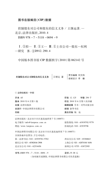 本书深入探讨了控制股东在公司治理中的信义义务,填补了我国公司法在此领域的研究空白。作者王继远以扎实的法学理论为基础,结合历史、比较法与实证研究方法,系统分析了信义义务的起源、法律依据及在公司实践中的适用。书中不仅梳理了英美法系中信义关系的发展脉络,还从经济分析视角揭示了信义义务存在的制度逻辑。尽管2006年《公司法》未明确控制股东的义务,本书前瞻性地构建了股东权与控制权平衡的理论框架,提出“新财产权”理念,具有重要的学术与实践价值。适合公司法研究者、实务工作者及对股东权利义务关系感兴趣的读者。