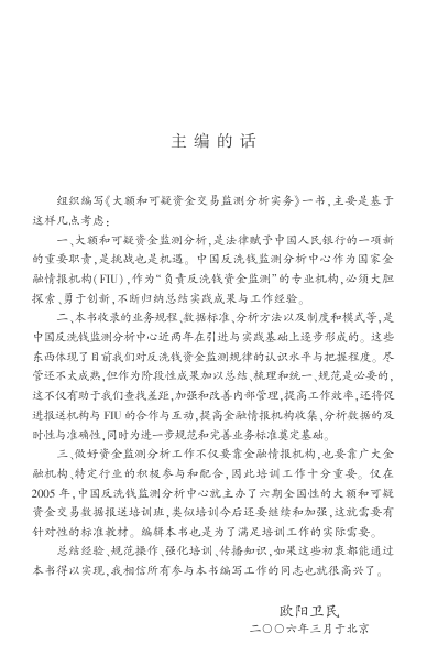 本书由中国反洗钱监测分析中心主编欧阳卫民领衔编写,凝聚了我国金融情报机构在大额和可疑资金交易监测领域的阶段性成果与实践经验。内容涵盖业务规程、数据标准、分析方法及制度模式,既是对反洗钱监测工作规律的系统总结,也为金融机构及相关从业人员提供了可操作的指导依据。书中内容源于真实监测实践,并服务于全国性培训需求,具有较强的实务性与权威性。适合反洗钱领域从业者、金融机构合规人员及监管研究者阅读参考。