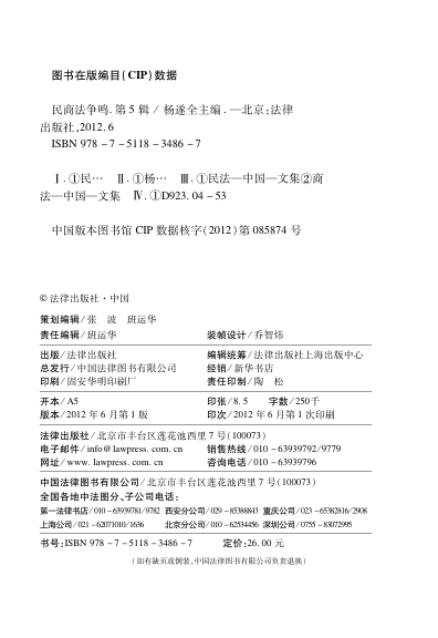 《民商法争鸣.第5辑》由杨遂全主编,法律出版社于2012年出版,是一本聚焦中国民法与商法领域热点与争议问题的学术文集。本书收录多篇来自法学研究者与实务专家的论文,内容涵盖民法理论、合同法、物权法、公司法等方向,体现了当时学界对制度构建与司法实践的深入思考。作为系列学术争鸣出版物之一,本书鼓励多元观点交锋,适合法学研究者、研究生及法律实务工作者参考。尽管成书于2012年,其探讨的问题仍具现实意义,是了解中国民商法发展脉络的重要资料。