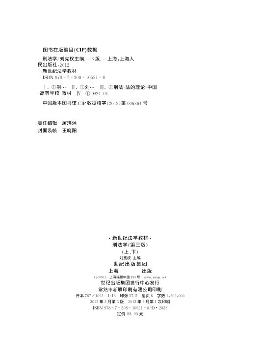 刑法学.3版👈点击保存 ❤️作者:刘宪权 ❤️出版社:上海人民出版社 ❤️相关介绍: 本书是《刑法学》第三版,由著名法学专家刘宪权教授主编,作为“新世纪法学教材”系列的重要组成部分,广泛应用于国内高校法学教育。内容涵盖刑法基本理论、犯罪构成、刑罚体系等核心议题,分为上下两册,体系完整、逻辑严密,兼具学术深度与教学实用性。本次分享为2012年上海人民出版社出版的完整版本,适合法学专业师生及实务工作者参考学习。 【📖】学习资料【🚫】商业禁用【❌】禁止转载【📧】侵权联系