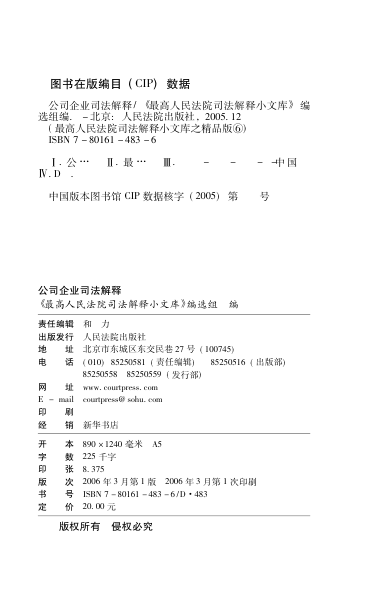 本书为《最高人民法院司法解释小文库之精品版》系列之一,由人民法院出版社权威编选,聚焦公司企业领域的现行有效司法解释,内容全面、编排清晰。全书以实务为导向,精选高频适用的司法解释文件,并附有背景资料、理解与适用的导读文章,帮助读者准确把握法律适用要点。适合法官、律师、企业法务及法学研究者日常查阅与学习。作为2006年首版的经典工具书,本书是掌握早期公司法司法实践脉络的重要参考资料。