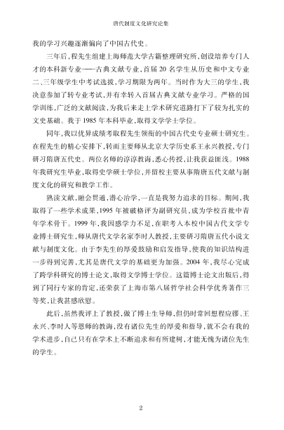 本书是作者多年唐代制度文化研究的论文结集,凝聚其在中国古代史、古典文献学与唐代文学交叉领域三十余年的治学心得。从师从程应镠、王永兴、李时人等名家,到跨学科完成唐代小说与制度文化的博士研究,作者始终秉持‘熟读文献,融会贯通’的学术信念。书中所收论文不仅体现扎实的史料功底,也展现制度与文化互动的深层思考。自序中娓娓道来的学术历程——从古籍所到学院管理,再到图书馆与研究生教育的‘双肩挑’生涯,更让人感受到一位学者在行政与治学之间坚守初心的不易。适合隋唐史、制度史及文献学研究者与研究生阅读参考。