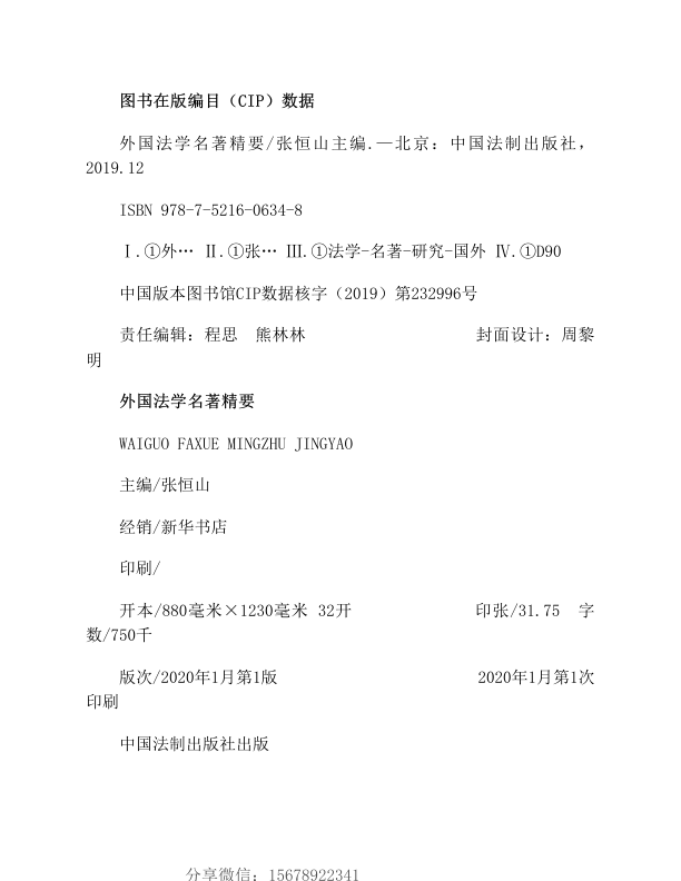 本书由张恒山主编,中国法制出版社出版,旨在帮助读者跨越语言与思维的障碍,深入理解西方18世纪以前最具代表性的法学与政治学经典。书中精选《理想国》《政治学》《利维坦》《社会契约论》《论法的精神》等11部名著,以商务印书馆汉译本为基础,进行忠实而通俗的精要解读。每一部著作均保留原作思想脉络与逻辑结构,内容严谨、表述清晰,特别适合法学、政治学专业本科生与研究生作为教学参考或自学读物。通过本书,读者可在较短时间内把握西方法治精神的核心要义,助力中国特色社会主义法治理念的深化与拓展。