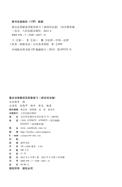 新诉讼法卷-2012年国家司法考试重点法条解读及配套练习-第11版 -2012年版👈点击保存