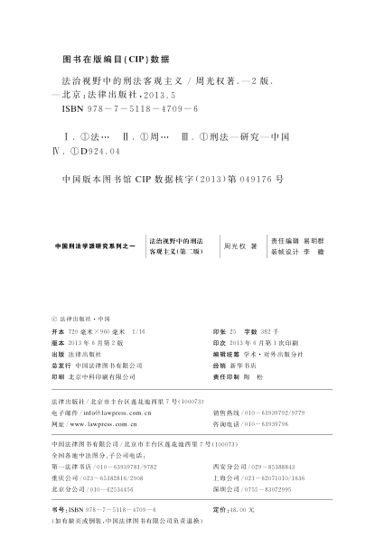 本书是清华大学法学院周光权教授的代表作之一,系统探讨了刑法客观主义在法治框架下的理论根基与实践意义。作为“中国刑法学研究系列”重要组成部分,本书从法治原则出发,深入剖析刑法客观主义与主观主义的根本对立,反思中国刑法学发展中对客观主义的忽视,并探讨其未来走向。第二版在原有基础上进一步完善,呼应了当代刑法学的前沿议题。本书不仅适合刑法学研究者、实务工作者阅读,也为理解中国刑法理论的学派争鸣提供了重要视角。语言严谨而不失可读性,是一部兼具学术深度与现实关怀的力作。