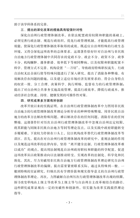 本书以全国30个民族自治州为研究对象,深入探讨民族自治地方行政体制改革的特殊性与复杂性。作者阮朝奇博士结合多年学术积累与实地调研经验,系统梳理了自治州行政体制改革的历史脉络、现实困境与制度成因,提出应从‘政策推动’转向‘法制推动’,构建权责清晰、运行高效的治理体系。书中不仅厘清了改革中的‘齐步走’误区,更强调自治权的实质落实,凸显民族区域自治制度的独特优势。研究融合制度分析、行政生态与系统思维,兼具理论创新与实践指导意义,为民族地区公共管理研究提供了重要参考。