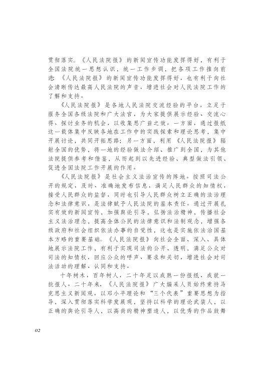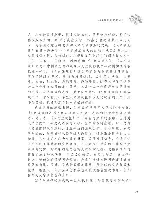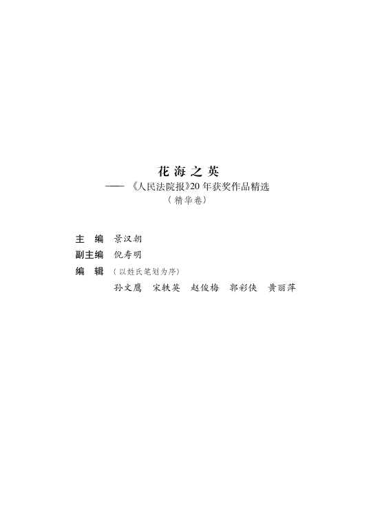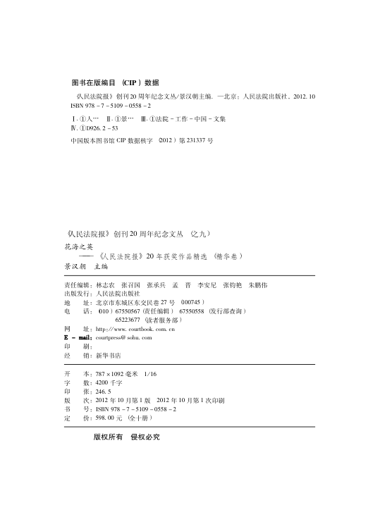 本书为《人民法院报》创刊20周年纪念文丛之精华卷,精选二十年来获奖新闻作品,全景展现中国司法改革与法院工作的历史脉络。作为最高人民法院的权威喉舌,《人民法院报》不仅忠实记录了人民司法事业的发展轨迹,更在推动法治宣传、促进经验交流、强化舆论引导方面发挥着重要作用。本书收录的报道兼具思想深度与新闻价值,既有重大案件的深度剖析,也有基层司法实践的生动呈现,是了解中国法院系统运作与法治进程的重要文献资料。适合法律从业者、司法研究人员及关注中国法治发展的读者收藏与研读。