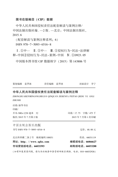 中华人民共和国侵权责任法配套解读与案例注释(第二版)👈点击保存