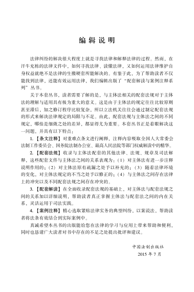 本书由中国法制出版社精心编撰,是《中华人民共和国侵权责任法》的实用配套读物。全书以主体法条文为核心,通过【条文注释】吸收全国人大法工委、最高人民法院等权威解读精华,精准阐释重难点内容;【配套法规】系统收录相关法律、行政法规、司法解释,厘清法律适用关系;【案例注释】精选典型实务案例,以案说法,提升法律应用能力。涵盖产品责任、交通事故、医疗损害、环境污染、网络侵权、高度危险责任等热点领域,特别关注新侵权类型与法律冲突问题,兼具理论深度与实践价值。适合法律从业者、法科学生及实务工作者案头参考。