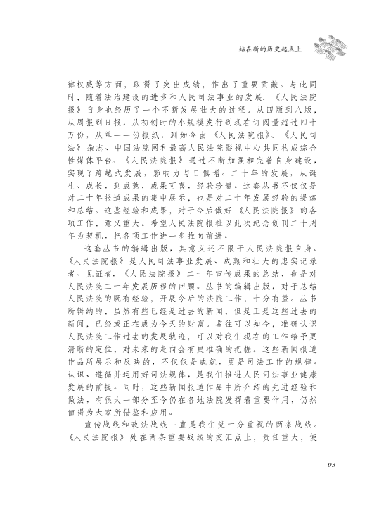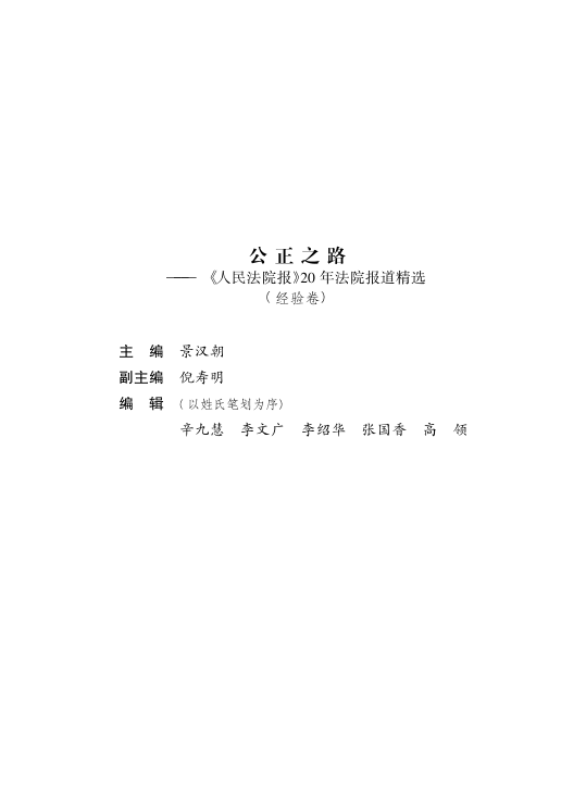 本书是《人民法院报》创刊20周年纪念文丛的重要组成部分——经验卷,系统梳理和总结了人民法院报二十年来在司法宣传、经验交流与法治推动方面的珍贵成果。通过权威视角,展现人民法院在审判实践、司法改革与队伍建设中的探索与成就,汇集各地法院的典型经验与理论思考,具有高度的实践参考价值和历史文献意义。作为最高人民法院指导全国法院工作的重要载体,本书不仅是司法媒体发展的缩影,更是理解中国司法运行逻辑的重要窗口。适合法律从业者、司法研究人员及对法治进程感兴趣的读者阅读收藏。