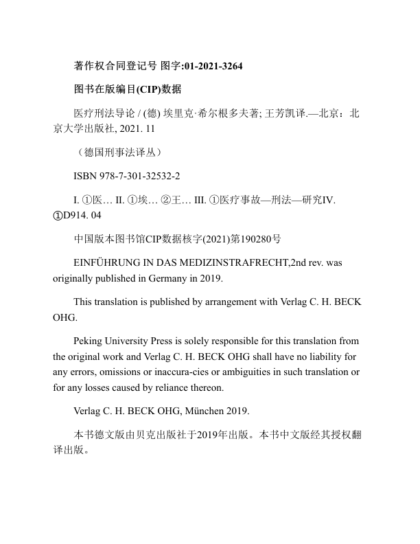 医疗刑法导论 22111 埃里克·希尔根多夫 著,王芳凯 译👈点击保存