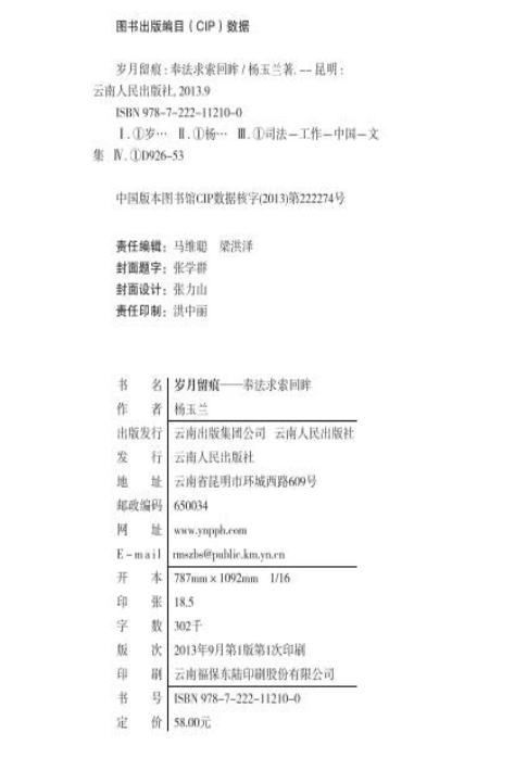岁月留痕——奉法求索回眸👈点击保存 💥作者:杨玉兰 💥出版社:云南人民出版社 💥相关介绍: 本书是杨玉兰女士关于中国司法工作的文集,以‘奉法求索’为主线,记录了作者在法治实践中所经历的点滴思考与真实感悟。文字朴实而深沉,既有对司法工作的回顾与总结,也折射出时代变迁下法律人坚守信念的精神轨迹。书中内容涵盖司法理念、实务经验与人生体悟,适合关注中国法治进程、司法制度与法律职业发展的读者。这不仅是一部个人回忆录,更是一段法治岁月的珍贵留痕。 学习资料|非商用|禁转载|侵权必删