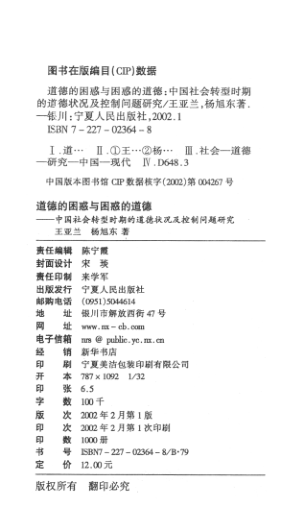 本书聚焦中国社会转型期的道德变迁,系统探讨了现代化进程中道德观念的冲突、失范与重构。作者王亚兰与杨旭东基于扎实的社会调研与理论分析,揭示了人们在价值选择上的普遍困惑,剖析了道德失控的社会根源,并提出了具有现实针对性的道德调控路径。作为宁夏“九五”社科规划基金资助项目,本书兼具学术深度与现实关怀,是理解当代中国社会伦理变迁的重要参考。适合社会学、伦理学研究者及关注社会文化转型的读者。