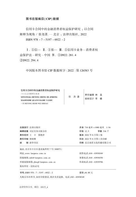 信用卡合同中的金融消费者权益保护研究:以合同解释为视角 202208 张尧👈点击保存