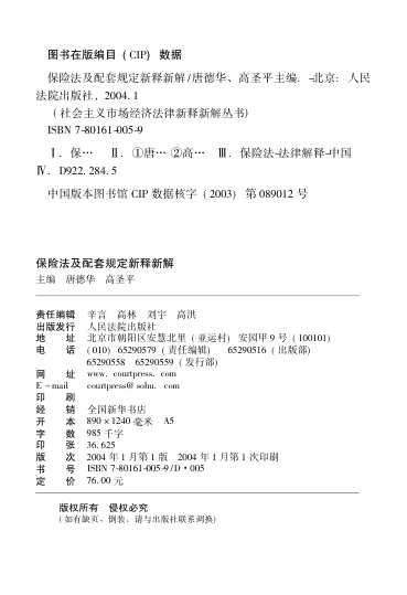 本书为‘社会主义市场经济法律新释新解丛书’之一,由唐德华、高圣平主编,立足于我国《保险法》施行以来的实践积累与理论发展,系统梳理并深入阐释了保险法及其配套规定的条文要义。本书创新性地将配套规定与法律条文对应编排,逐条解析,兼具实用性与操作性,是保险从业者、司法实务工作者及法律研究者理解与适用保险法律的重要参考。内容涵盖总则、保险合同、保险公司监管等多个方面,理论扎实,案例丰富,适合实务查阅与系统学习。