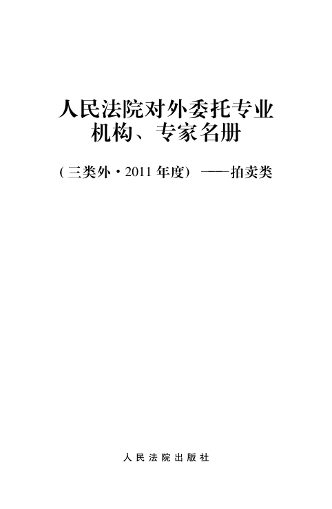 本书由最高人民法院主编,苏泽林担任主编,人民法院出版社于2011年出版,是全国法院系统对外委托专业机构名录的权威汇编之一。本书聚焦“拍卖类”机构名册,收录了当年经法院审核入选的各类司法拍卖专业机构信息,是研究司法拍卖机制、了解行业格局的重要参考资料。