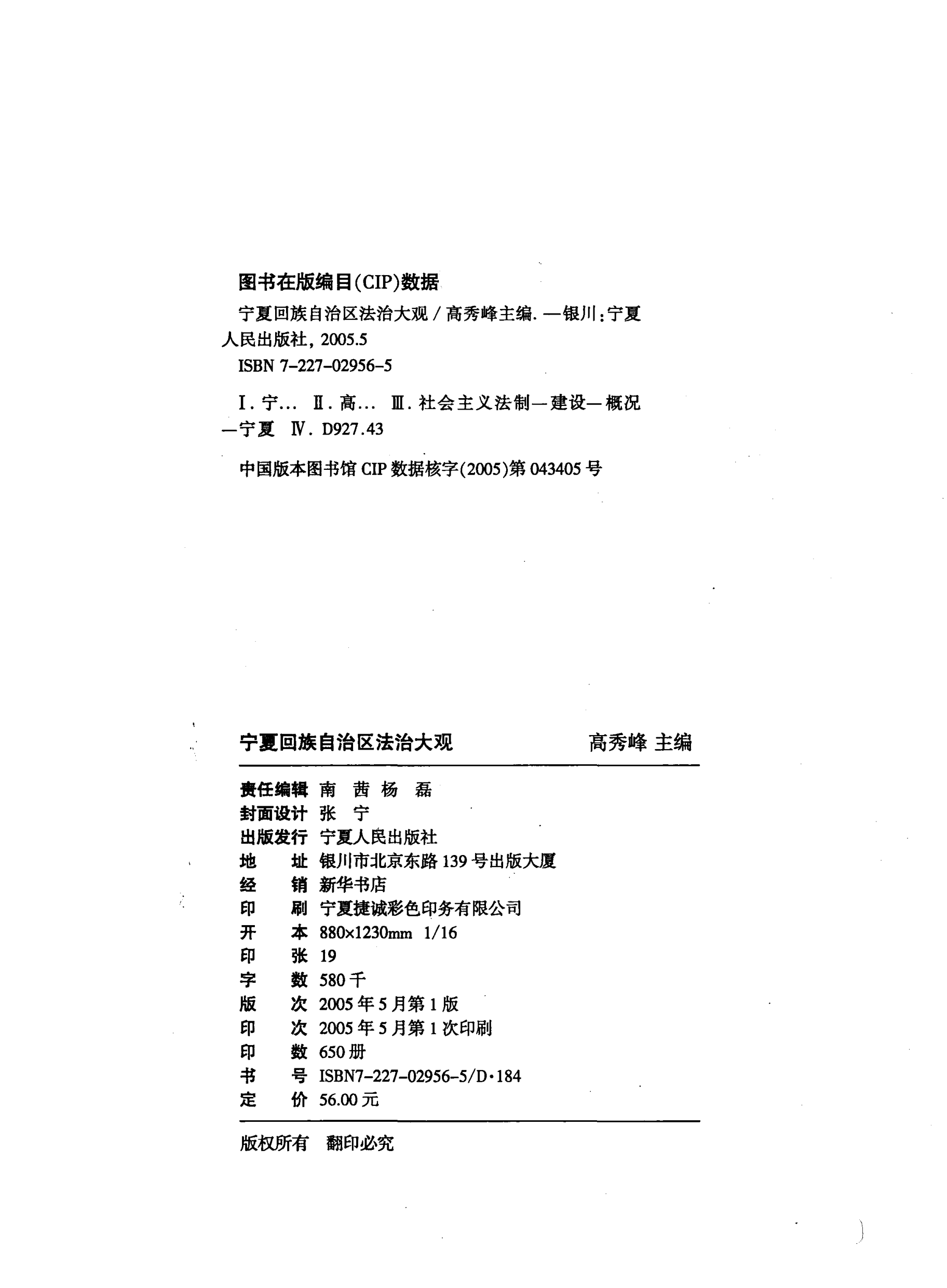 本书由高秀峰主编,宁夏人民出版社于2005年出版,系统梳理了宁夏回族自治区在社会主义法治建设方面的实践与成就。内容涵盖法治发展脉络、政策实施概况及重要人物讲话等,兼具史料价值与研究意义。虽出版较早,但对理解西部民族地区法治演进具有重要参考作用。适合法学研究者、公共政策关注者及地方史志爱好者阅读参考。