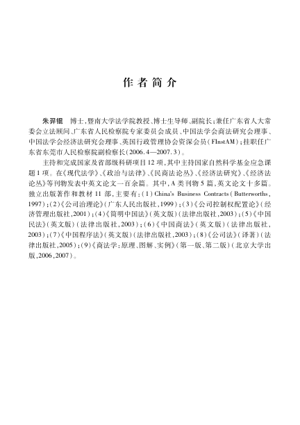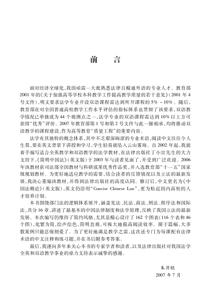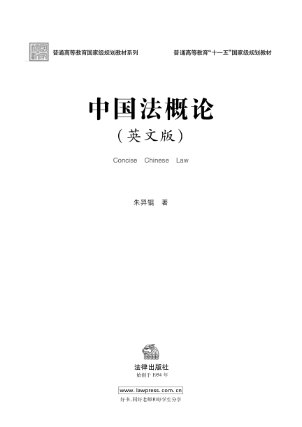 本书是暨南大学法学院朱羿锟教授主编的英文版中国法教材,被列为普通高等教育‘十一五’国家级规划教材,专为高校法学双语教学设计。内容涵盖宪法、民法、商法、刑法、程序法与国际法六大领域,系统梳理中国法律体系的基本框架与核心原理。全书采用简明风格,配有162个图表,化繁为简,提升理解效率,并附每章术语中文注释与练习题,便于教学与自学。前身为广受好评的《简明中国法》(英文版),此次修订更新立法动态,更契合当前人才培养需求。适合法学专业师生、涉外法律从业者及对中国法律感兴趣的国际读者参考使用。