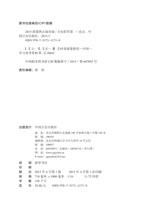 本书由辛向阳、陈建波等知名政策研究专家联袂撰写,聚焦2015年中国经济社会发展的关键议题,深入解读当年重大政策背后的逻辑与导向。内容涵盖宏观调控、民生保障、改革方向等热点话题,紧扣时政脉搏,语言通俗易懂,兼具理论深度与实践参考价值。作为系统了解2015年中国政策走向的重要学习参考资料,本书适合政府工作人员、研究者及关心国家发展的读者阅读。原书由中国言实出版社出版,现整理分享,助力政策学习与传播。