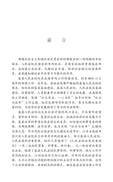 本书由江苏省南通市崇川区人民法院组织编写,立足基层审判实践,聚焦民事案件审理中的常见问题,以简洁明了的问答形式系统梳理法律适用要点与操作流程。内容涵盖从立案到裁判的各个环节,兼具实务指导与理论参考价值,是基层法官、司法工作者及法律从业者案头实用工具书。全书基于一线办案经验提炼而成,语言平实、逻辑清晰,尤其适合应对复杂多样的民事纠纷场景。作为全国法院文化建设先进单位的成果之一,本书体现了‘从实践到理论,再回归实践’的法学应用路径,对提升审判质量、促进司法公正具有现实意义。