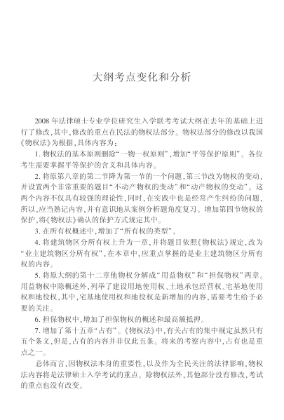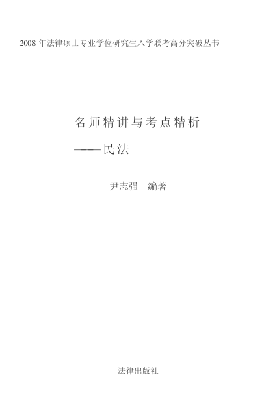 本书是2008年法律硕士专业学位研究生入学联考高分突破丛书之一,由中国政法大学民法学教授尹志强博士精心编著。作为资深法律硕士考前辅导专家和考试大纲修订人,作者立足最新考试动态,紧扣《物权法》实施后的考点变化,系统梳理民法核心知识体系。书中重点解析了物权法基本原则、物权变动、业主建筑物区分所有权、用益物权与担保物权等新增与调整内容,结构清晰,讲练结合,直击考试难点与重点。不仅适用于法律硕士考生高效备考,也对司法考试及法学专业学生深化理论理解具有重要参考价值。权威师资、精准内容、实用导向,助力考生实现高分突破。