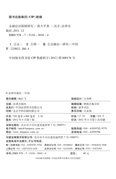 本书由金融法领域青年学者蒋大平撰写,系统梳理了我国改革开放以来金融法治化的历史进程,深入探讨了金融监管法律制度的构建与完善。内容涵盖银行业、证券业、保险业及金融衍生品等多领域的监管实践,并借鉴美国、英国、欧盟在金融危机后的立法经验,提出加强金融消费者权益保护、反洗钱法治建设与国际监管合作的路径。