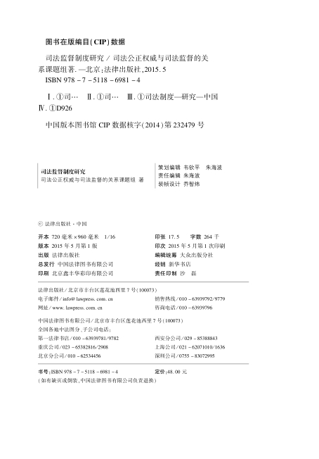 本书由中国应用法学研究所课题组撰写,系统探讨司法监督制度在中国法治建设中的定位与作用。立足于司法公正与权威的实现路径,剖析当前司法监督体系在实践中面临的困境与挑战,尤其关注监督机制如何在防止权力滥用的同时,避免侵蚀司法独立与权威。书中结合理论与实务,融合国内实践与域外经验,提出具有前瞻性与可操作性的制度完善建议。作为《人民法院理论研究丛书》之一,本书凝聚了审判理论重大课题的研究成果,对法律从业者、法学研究者及司法改革关注者具有重要参考价值。