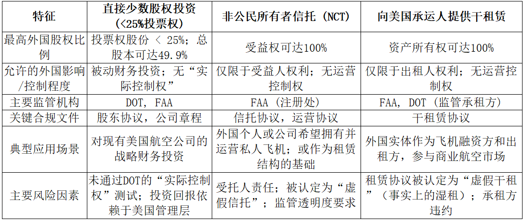 (2)非公民可用非公民信托登记,但这只解决登记问题,不赋予运营为“美国承运人”的资格;FAA2013年明确了NCT的合规要件/信息披露 [28] 。