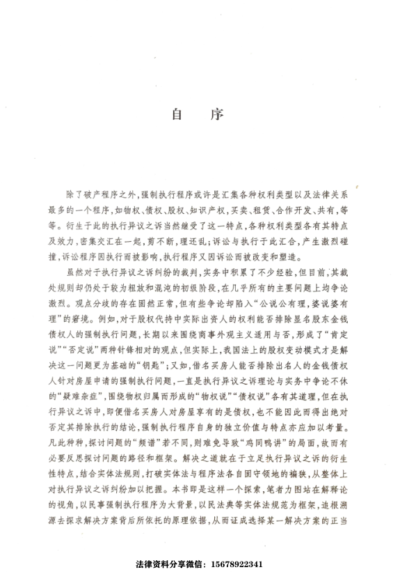 自序中坦言:执行异议之诉是诉讼与执行交汇的“战场”,规则尚处混沌,共识有待凝聚。正因如此,本书不追求完美答案,而是提供一种有根基、可反思的解释论路径,引导读者回归制度本源,理解裁判背后的法理与时代精神。适合法官、律师、法务及法学研究者深度研读。