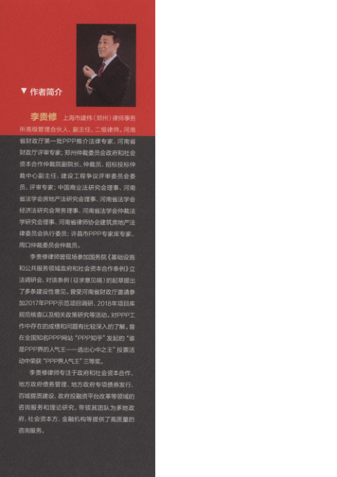 作为国务院PPP立法调研参与者,作者曾提出多项被采纳的立法建议,并推动成立全国首家PPP仲裁院。书中内容不仅体现政策敏感度与实务深度,也展现了理论思考的独立性与批判性。适合从事PPP项目的政府人员、法律从业者、金融机构及研究人员参考使用。