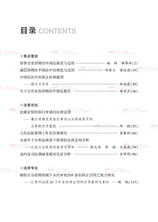 本书由中国人民大学民商事法律科学研究中心主办,王利明教授主编,是中文社会科学引文索引(CSSCI)来源集刊之一。本辑聚焦民法基本原则的理论演进与司法适用,涵盖情事变更、诚信原则、禁止权利滥用及公序良俗等核心议题,兼具学术深度与实务参考价值。同时设法官论坛与法学专论栏目,探讨执行裁定、案例制度、矿业权转让合同效力等热点问题,体现理论与实践的深度融合。适合法学研究者、司法实务工作者及对民法解释与判例研究感兴趣的读者阅读。