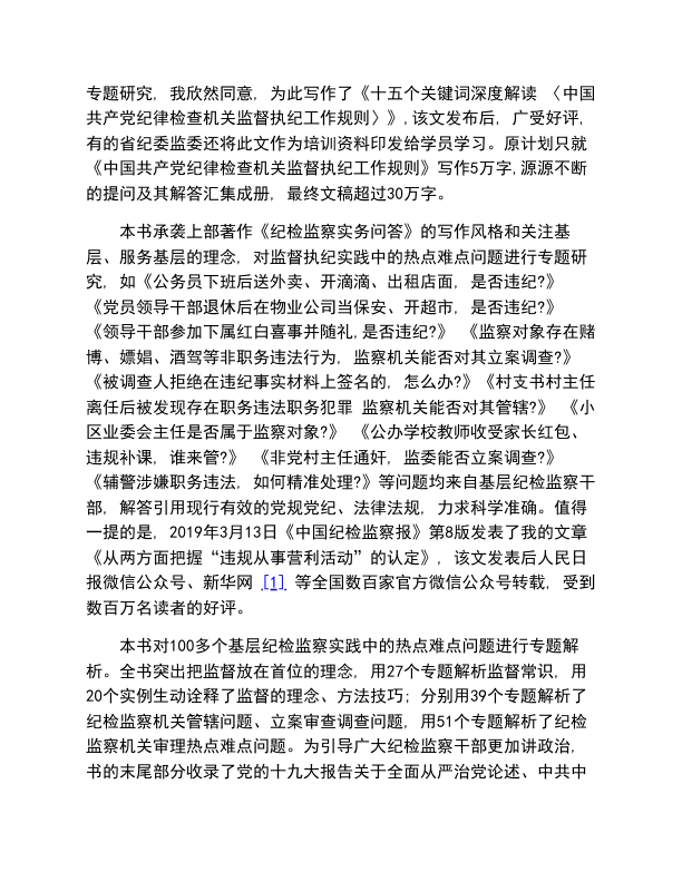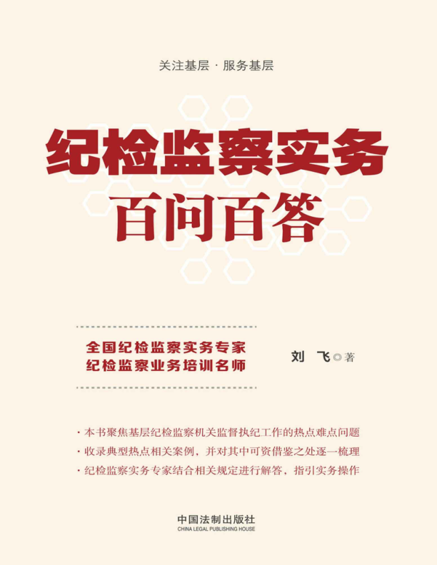 本书由全国纪检监察实务专家刘飞倾力撰写,聚焦基层纪检监察工作中的热点、难点问题,涵盖监督执纪、立案审查、审理处置、监察管辖等百余个实务场景。书中问题均来自一线实践,如‘公务员下班送外卖是否违纪’‘小区业委会主任是否属于监察对象’等,贴近现实、极具代表性。作者结合最新党规党纪与法律法规,逐一解析,条理清晰、依据充分,兼具专业性与可操作性。承袭《纪检监察实务问答》的务实风格,本书既是基层纪检干部的工具书,也是提升业务能力的培训佳选。附录收录十九大报告及党的政治建设意见,助力打造‘既懂党规又通国法’的复合型纪检监察人才。