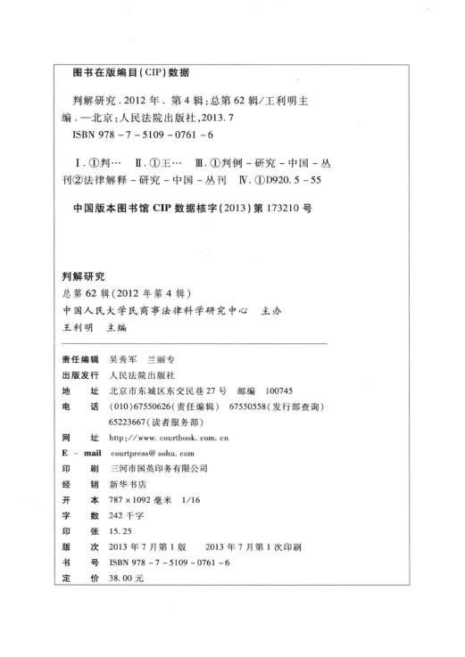 判解研究. 2012 年. 第4 辑: 总第62 辑👈点击保存