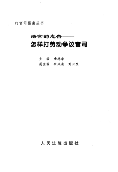本书是《打官司指南丛书》之一,由最高人民法院专家唐德华主编,系统讲解劳动争议诉讼的全流程。内容涵盖劳动争议的受理范围、诉讼准备、证据收集、庭审技巧及法律适用等关键环节,紧密结合中国现行劳动法律法规,注重实务操作。书中案例丰富,语言通俗易懂,既适合劳动者维护自身权益,也为企业管理者和法律从业者提供参考。作为一本面向大众的普法读物,它不仅教你‘怎样打官司’,更强调‘防患于未然’,提升法律意识,规避劳动风险。