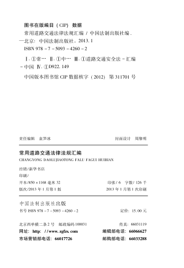 本书由权威法律出版机构——中国法制出版社精心编纂,系统收录了我国现行常用的道路交通安全法律、行政法规、部门规章、司法解释及相关国家标准,是理解与适用交通法规的重要参考。