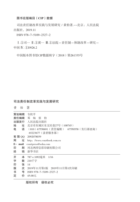 本书聚焦中国司法责任制改革的实践路径与发展趋势,系统梳理了改革背景、制度设计与实施成效。作者黄怡基于扎实的理论功底和实证调研,深入剖析法院系统责任机制的重构逻辑,回应司法独立与 accountability 的关键议题。内容涵盖制度变迁、典型案例与政策建议,适合法学研究者、法律实务工作者及公共政策关注者阅读。作为2019年人民法院出版社推出的专题研究成果,本书为理解当代中国司法改革提供了重要参考。
