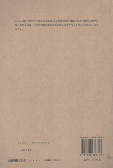 本书由著名刑法学者林钰雄执笔,以扎实的学术功底追溯检察官制度的起源与发展,深入剖析其在刑事诉讼中的任务与组织法上的上下级关系。作者结合德国法治经验与台湾本土实践,反思检察体制的结构性问题及继受过程中的“水土不服”。虽作者未选择检察官为职业,却因时代事件触发深刻思考,由此展开一段理论与现实交织的学术旅程。文字严谨而不失温度,适合关注刑事司法、检察制度与法治精神的读者精读。