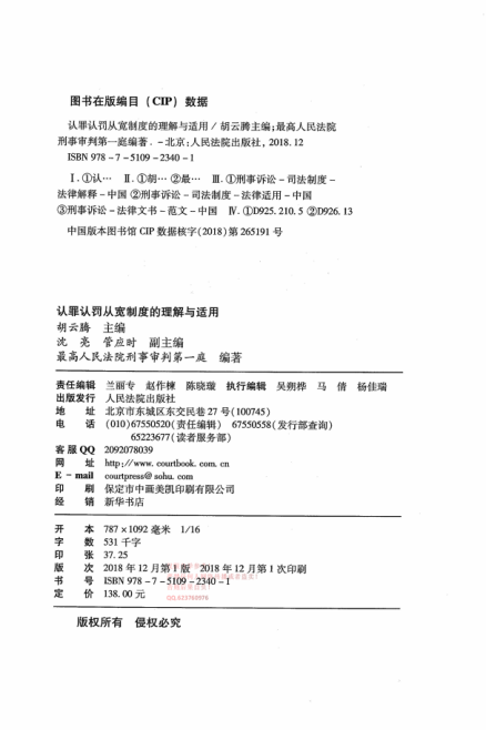 本书由最高人民法院大法官胡云腾主编,最高人民法院刑事审判第一庭组织编写,是深入理解与适用2018年《刑事诉讼法》修改中认罪认罚从宽制度的权威读物。全书立足于四年来全国试点工作的实践经验,系统梳理制度设计逻辑、法律适用要点及司法操作规范,兼具理论深度与实务指导价值。撰稿团队汇集多位资深刑事法官与法学博士,确保内容专业、精准、可操作。适合刑事法官、检察官、律师及法学研究者阅读,是掌握新时代中国刑事司法“繁简分流”与“宽严相济”政策落地的重要参考。