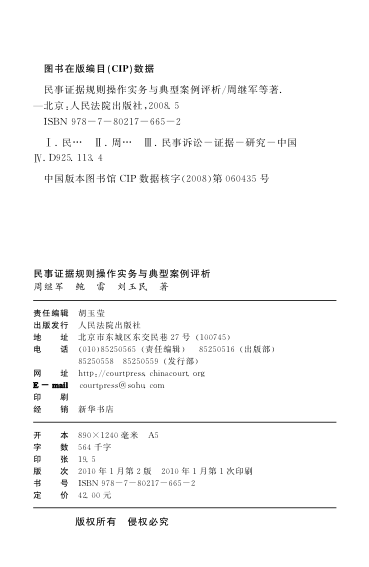 本书由北京市高级人民法院资深法官周继军、鲍雷、刘玉民联袂撰写,立足司法实践,系统解读民事证据规则的操作要点。书中结合最高人民法院《关于民事证据的若干规定》,通过大量典型案例剖析证据的收集、审查与认定过程,揭示实务中常见问题与应对策略。内容兼具理论深度与实践指导价值,尤其适合法官、律师及法科学生深入理解证据在庭审中的核心作用。作者团队丰富的审判与研究经验,使本书成为连接证据规则与司法应用的重要桥梁。