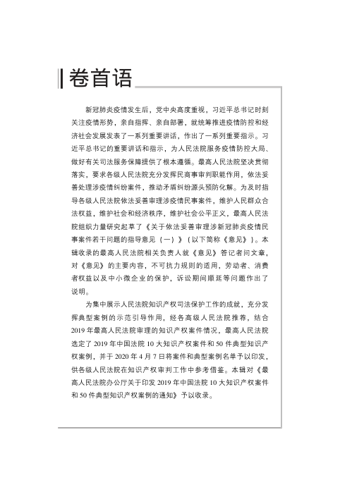 本期《民事法律文件解读》聚焦2020年民商事审判重点领域,权威收录最高人民法院关于依法妥善审理涉新冠肺炎疫情民事案件的指导意见及相关负责人答记者问,深入解析不可抗力适用、劳动者与消费者权益保护、中小微企业司法保障等热点问题。同时,全面呈现2019年中国法院10大知识产权案件和50件典型知识产权案例的发布通知,展现知识产权司法保护最新成果。内容兼具实务指导性与政策解读深度,是法官、律师、法务及研究人员了解司法动向的重要参考。