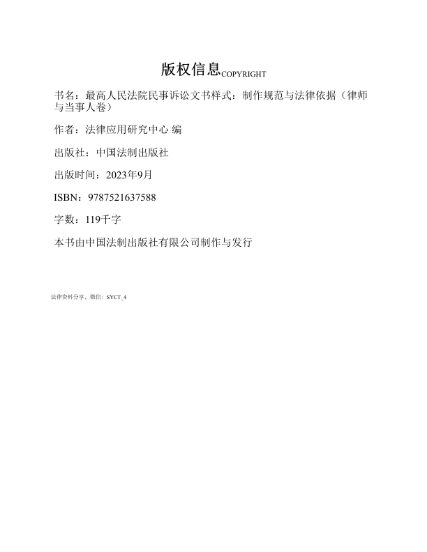 最高人民法院民事诉讼文书样式:制作规范与法律依据(律师与当事人卷)202309👈点击保存