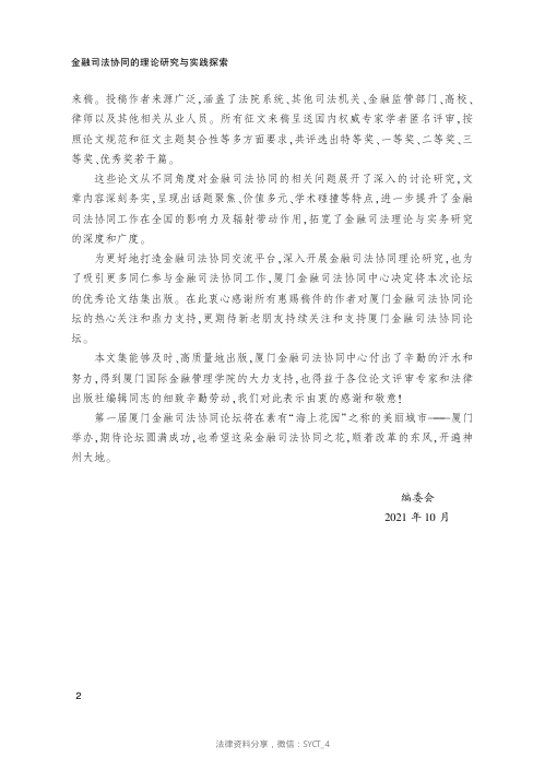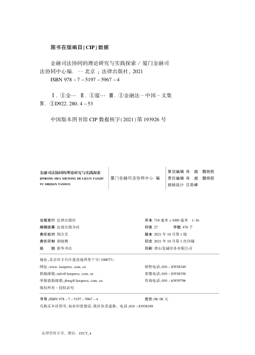 本书由厦门金融司法协同中心编撰,汇集首届厦门金融司法协同论坛的优秀论文成果,围绕新发展阶段下金融司法与监管协同的理论与实践展开深入探讨。内容涵盖民法典实施对金融审判的影响、金融科技创新的审慎监管、金融风险防范中的司法角色等热点议题,兼具理论深度与实务价值。作为入选‘中国改革2020年度典型案例’的厦门金融司法协同中心的阶段性成果,本书为法院、金融监管机构、学者及实务工作者提供了宝贵的参考视角。适合关注金融法治、司法改革与风险治理的专业人士阅读。