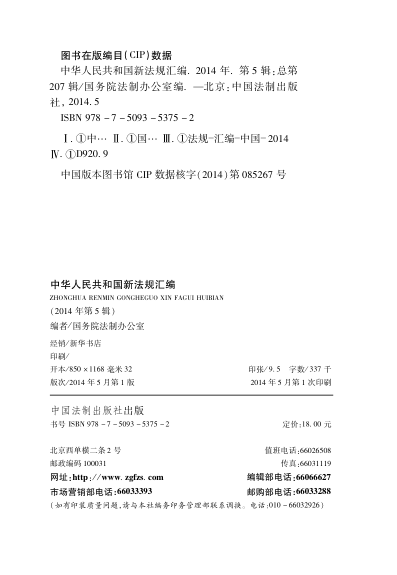 中华人民共和国新法规汇编.2014 年.第5 辑:总第207辑👈点击保存
