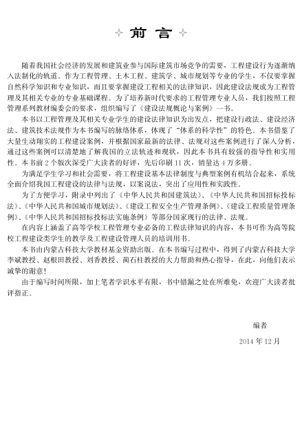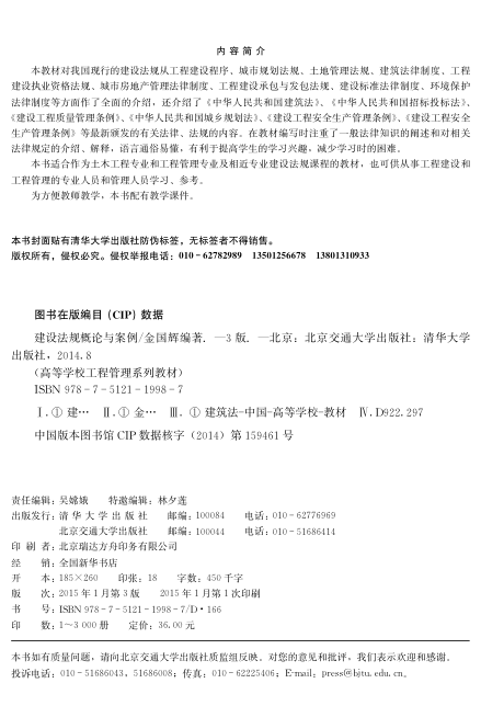 本书系统梳理我国现行建设法规体系,涵盖工程建设程序、城市规划、土地管理、建筑法、房地产管理、招投标、安全生产、建设标准及环境保护等多个关键领域。以工程管理及相关专业学生需求为出发点,融合建设行政法、经济法与技术法规三大脉络,结构科学,逻辑清晰。第三版紧跟最新法律法规动态,结合丰富实务案例,以案释法,突出实用性与实践指导价值。书中还收录《建筑法》《招标投标法》《建设工程质量管理条例》等核心法规原文,便于查阅学习。适合作为土木工程、工程管理等专业的教学用书,也适合工程建设与管理人员参考使用。配套教学课件,助力课堂教学。