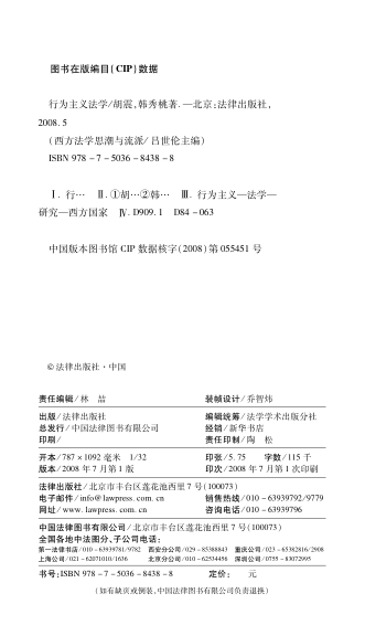 本书《行为主义法学》由胡震、韩秀桃合著,是《西方法学思潮与流派》丛书中的重要一册。该丛书由吕世伦主编,旨在系统梳理和普及西方代表性法学思想的发展脉络。本书聚焦“行为主义法学”这一独特流派,结合20世纪社会科学的发展背景,探讨法律研究如何从规范文本转向对法律实际运作中人类行为的观察与分析。