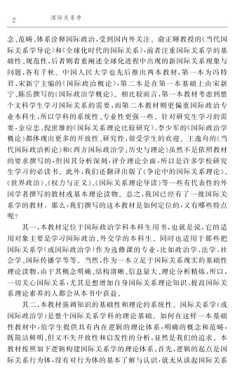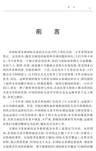 教材注重概念界定与理论梳理,在吸收国内外研究成果的基础上,强调知识的基础性、体系的完整性与视角的开放性,既适合作为高校课程教材,也适合对国际关系理论感兴趣的读者提升理论素养。书中还融入全球化时代的新现象与中国定位的思考,体现时代关切与本土视野。