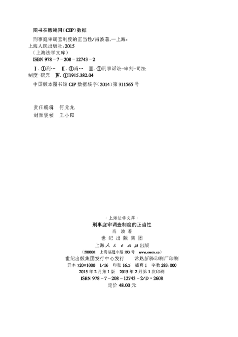 本书由肖波著,立足中国刑事庭审实践,系统探讨庭审调查制度的正当性基础。作者从程序正义、权力制约与权利保障等维度出发,结合实证分析与法理推演,深入剖析现行制度的运行逻辑与结构性问题。作为‘上海法学文库’系列之一,本书兼具学术深度与现实关怀,为司法改革背景下的刑事诉讼研究提供了重要理论参考。适合法学研究者、实务工作者及对司法制度感兴趣的读者阅读。